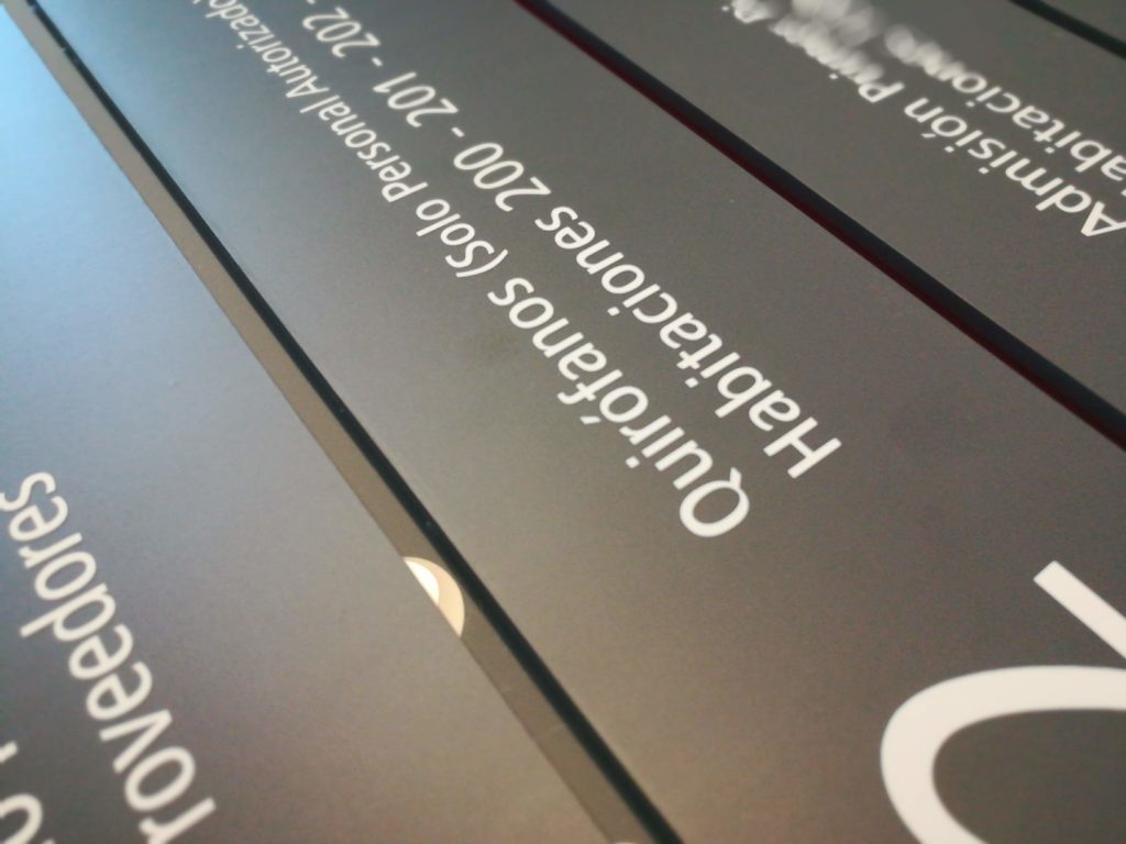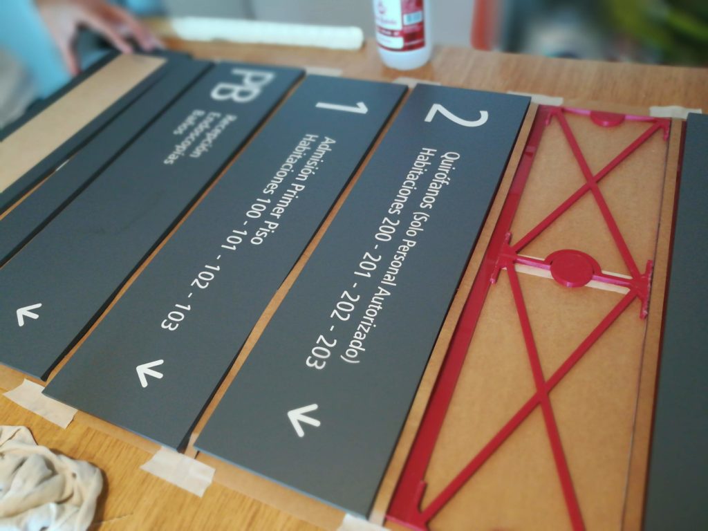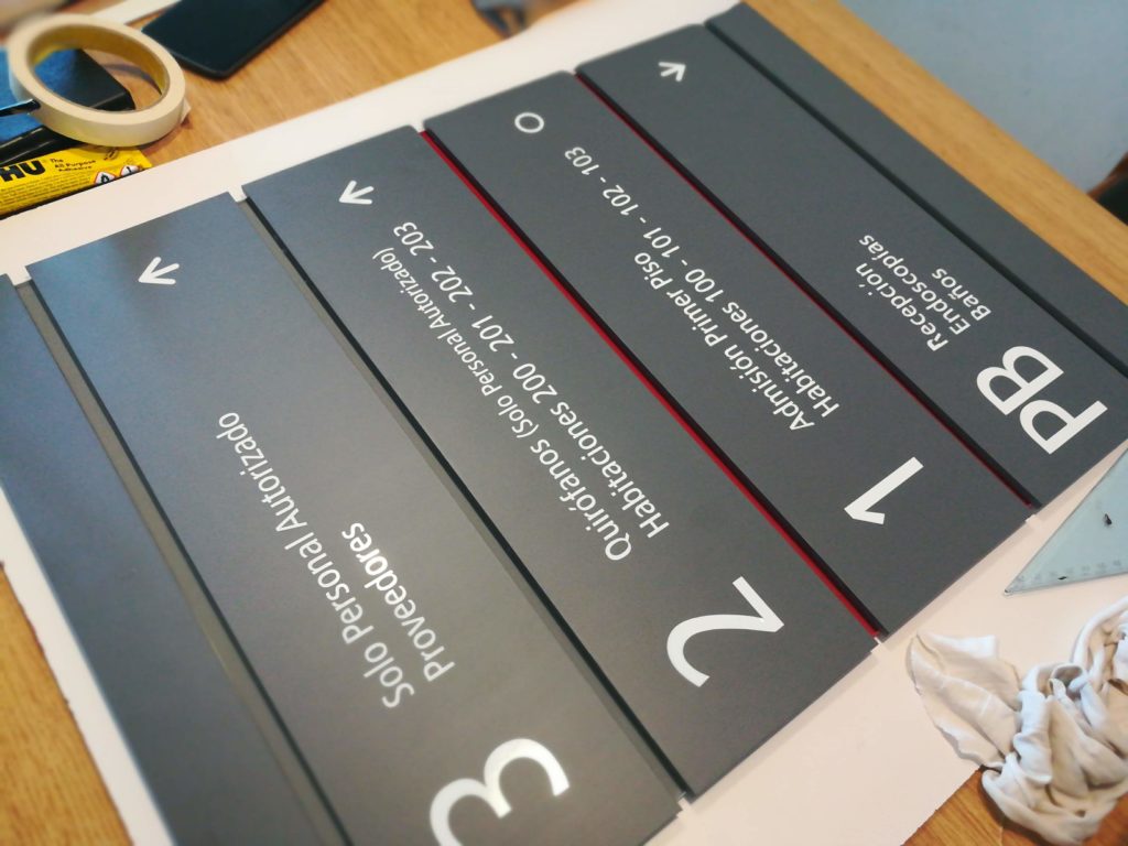 Señalética Nominativa Publicada en 15 febrero, 201922 mayo, 2019 por c1401085 Armado de señaletica s/ especificación de aspecto del cliente Soporte impreso en 3d con separadores acrílicos y frente de mdf 5.5mm fondeado y contenido textual vinilico